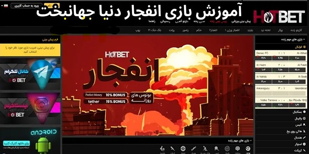 پیش از هر اقدامی برای شرط بندی روی انفجار سایت hotbet دنیا جهانبخت، باید در مورد روش های تشخیص ضریب و همین طور تکنیک های مدیریت مالی اطلاعات کاملی را کسب کنید. بازی انفجار یکی از پرسود ترین بازی های کازینویی می باشد؛ اما برای کسب سودهای بالا از آن شما نیازمند انجام این بازی به صورت صحیح می باشید. پس از تکمیل اطلاعات خود در مورد روش های تشخیص ضریب با استفاده از تکنیک ریتم خوانی بازی انفجار حال باید به سراغ نسخه شبیه ساز انفجار برویم.